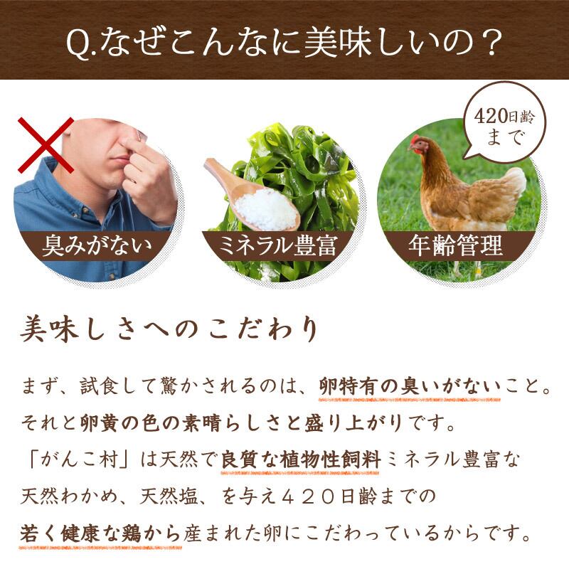保存方法:冷蔵庫(10℃以下)で保存してください。生食の場合は賞味期限内に使用し、賞味期限経過後および、殻にヒビが入った卵は、なるべく早めに、充分に加熱調理してお召し上がりください。