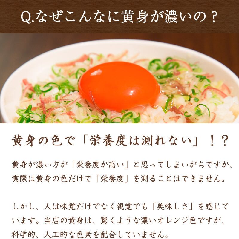 保存方法:冷蔵庫(10℃以下)で保存してください。生食の場合は賞味期限内に使用し、賞味期限経過後および、殻にヒビが入った卵は、なるべく早めに、充分に加熱調理してお召し上がりください。